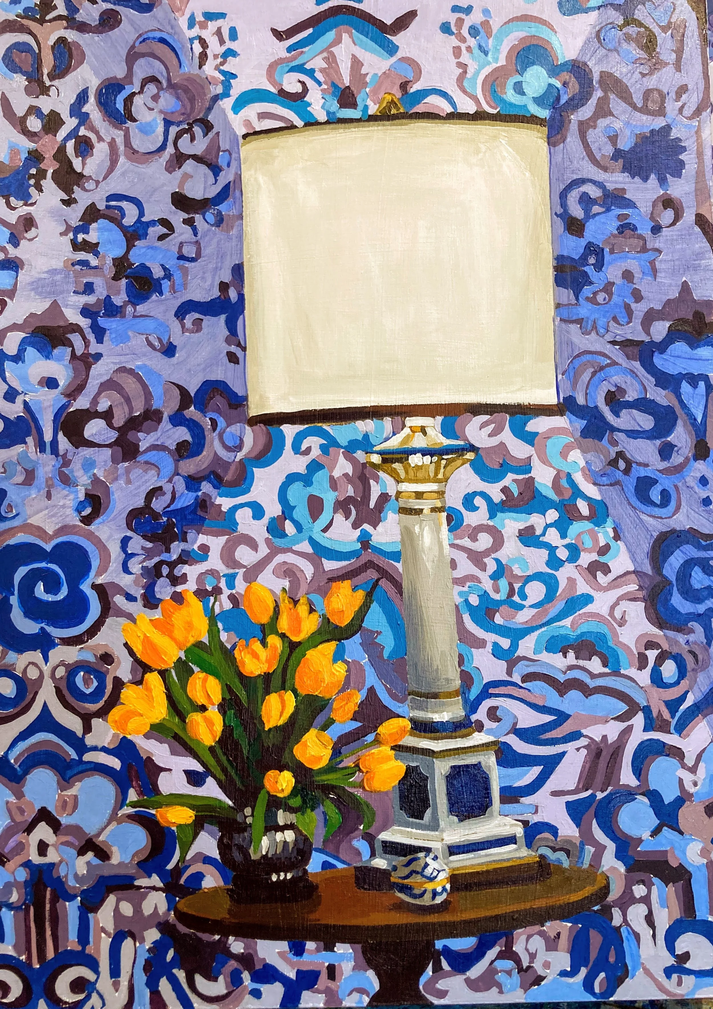 Lou Haney is a Charlottesville-based artist whose vibrant, mixed-media paintings transform domestic spaces into nostalgic sanctuaries. Blending oil, acrylic, and fiber art, Haney explores memory, femininity, and the tension between fantasy and reality, offering psychological refuge from modern chaos.