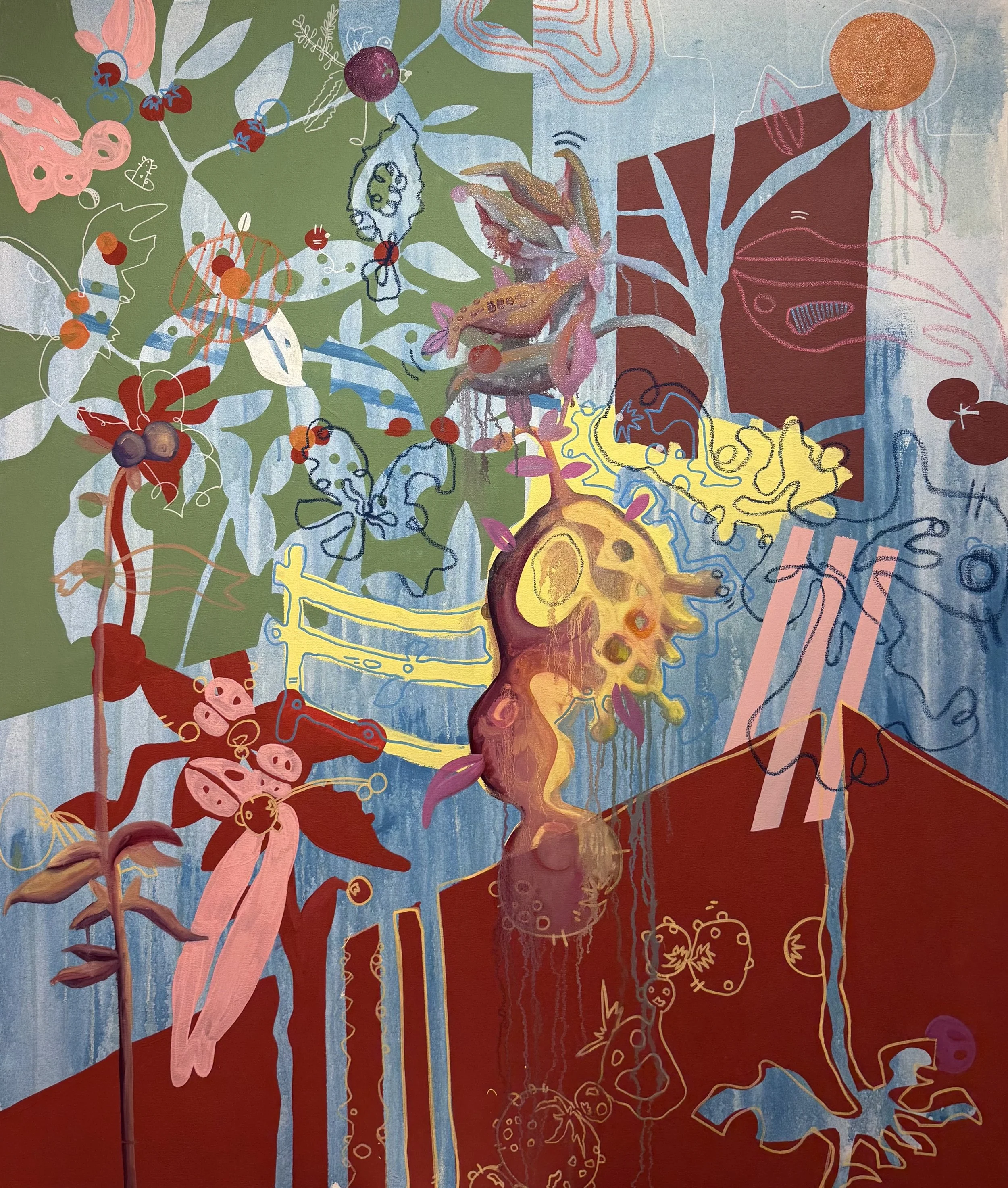 Acrylic, oil and pastel on canvas