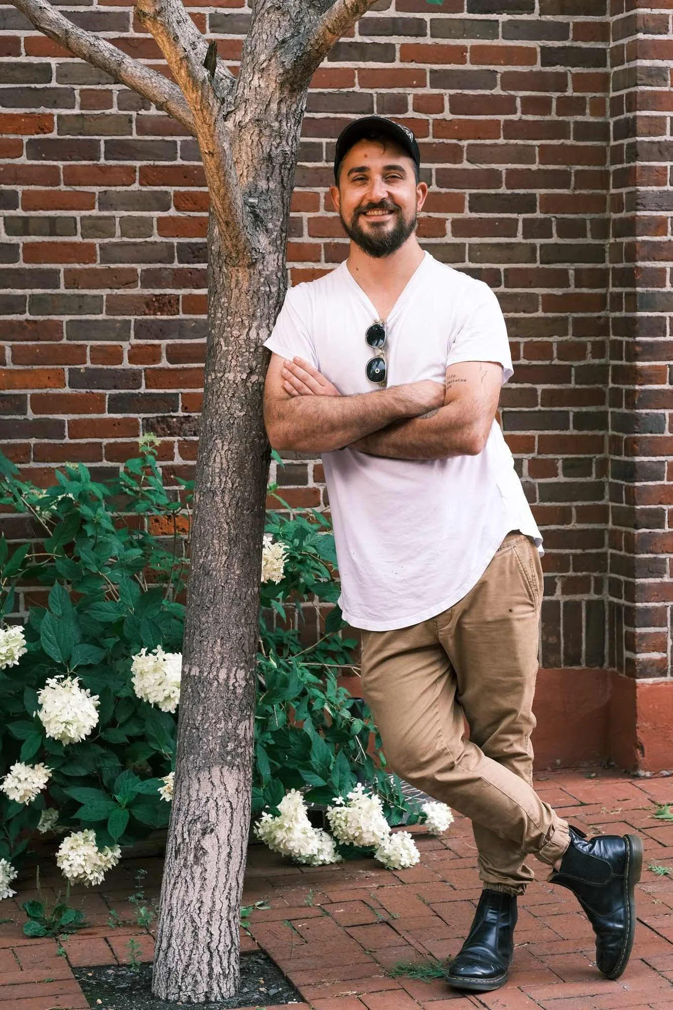For this 7x7x7 project, however, Jesus found himself in front of the camera for a change — framed by a cloudy, quiet brick lined side-street off the Downtown Mall, just minutes before a downpour. While he prefers his usual place behind the camera, while he is in front of the camera, he is reminded of the directions he usually tells his portrait subjects.