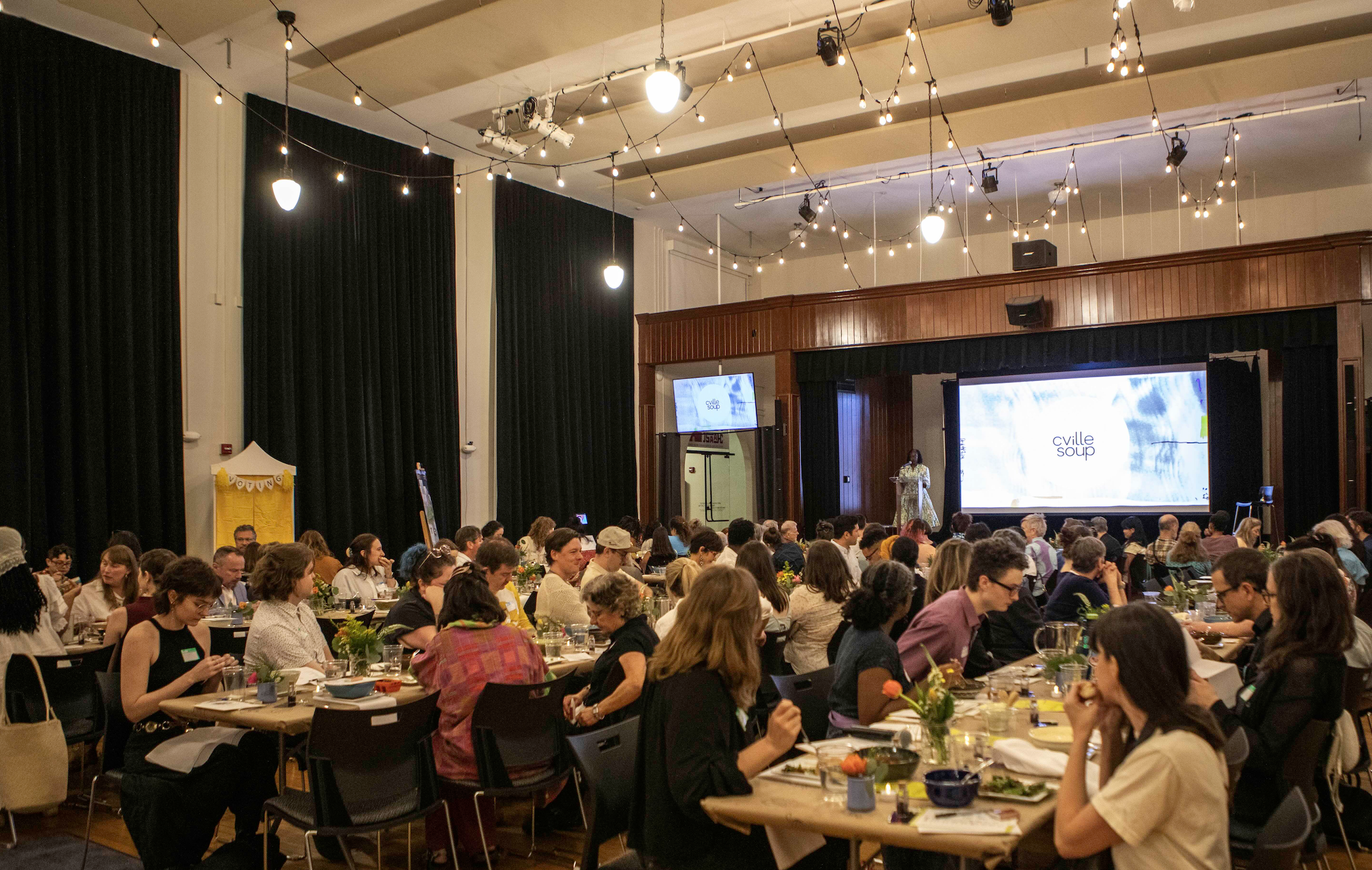 Charlottesville SOUP is a program of New City Arts. The 2026 SOUP dinner is made possible by generous sponsors including theJefferson School African American Heritage Center, the Charlottesville Area Community Foundation, Eventide, Hello Comics, C-VILLE Weekly, Nest Realty, Kristen Finn Photography, The A/V Company, Splendora's Gelato, Daisy Dee, Amanda Monroe Finn, Women Advancing, and anonymous donors.